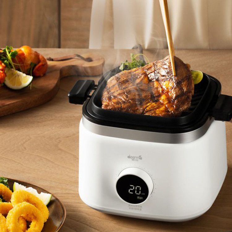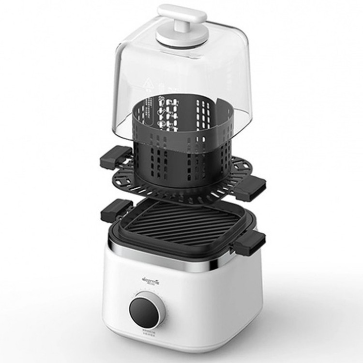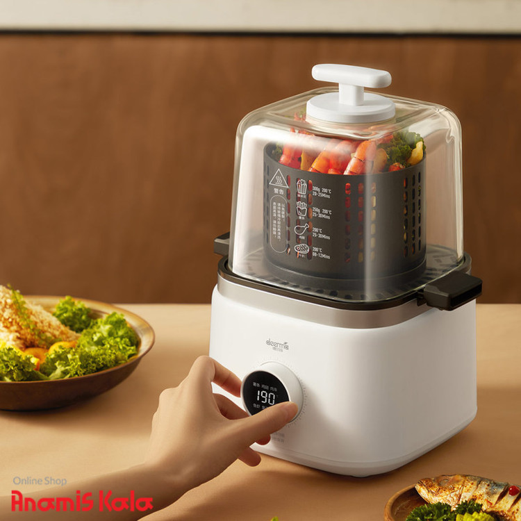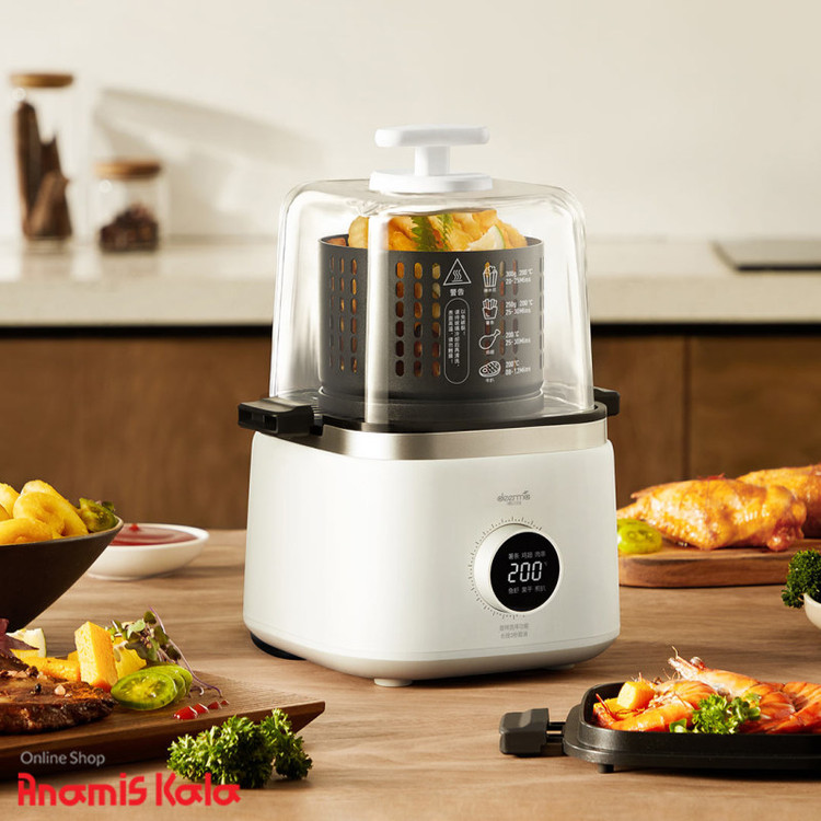 هواپزها یکی از جدیدترین محصولات مرتبط با پخت و پز هستند. دستگاه هواپز شیائومی مدل Deerma DEM-KZ200 یک دستگاه تهیه غذای سالم و بدون روغن است. این دستگاه با استفاده از جریان همرفتی هوای گرم باعث پخت کامل غذا میشود. دستگاه هواپز بدون روغن درما یک دستگاه چندمنظوره است که امکان کباب کردن و سرخ و سوخاری کردن انواع غذاها را به شما میدهد. این دستگاه دارای یک لامپ هالوژنی است و امواج نوری تولید میکند که حرارت طبخ غذا را ایجاد میکند و همزمان یک فن هوا و گرما را در درون ظرف به گردش در میآورد تا قسمتهای مختلف غذا به صورت همسان پخته شود؛یکی از مهمترین مزایای هواپز DEM-KZ200 شیائومی بی نیازی به روغن یا آب در پخت غذاست. این خاصیت به افرادی که رژیمهای خاص کم کالری یا گیاهخواری دارند بسیار کمک میکند. مورد دیگری که در هواپز DEM-KZ200 شیائومی قابل توجه است پخت یکنواخت غذاها و خوراکی هاست. شما بدون نیاز به اینکه منتظر بمانید تا روغن داغ شود و بدون آنکه نیاز باشد مراقب غذا باشید، میتوانید به سادهترین روش سالمترین خوراکیها را تهیه کنید. در این صورت احتمال سوختگی موضعی در غذا نیز وجود ندارد. این محصول از 2 روش مختلف پخت و پز پشتیبانی خواهد کرد. روش اول، پخت از طریق تابه بوده که تابه راه راه توسط سیستم گرمایشی پشت آن گرم و بلافاصله گرما را منتقل و امکان پخت و گریل کردن انواع سبزیجات، گوشت و دیگر مواد غذایی را فراهم می کند.روش دوم پخت، استفاده از سبد مخصوص سرخ کردن است که 100 سوراخ تعبیه شده در اطراف آن، گردش هوای گرم و امکان تماس کامل گرما با مواد خوراکی را فراهم می کند تا بدون نیاز به روغن و تنها با جریان هوای گرم، غذا به صورت ترد و مغز پخت آماده شود. محفظه هواپز بدون روغن درما مدل DEM-KZ200 شفاف است و این طراحی اجازه میدهد تا روند پخت را زیر نظر بگیرید. این هواپز دارای یک صفحه کنترل ساده است که در 6 حالت مختلف پخت و پز قابل تنظیم است. دستگاه هواپز شیائومی دارای بدنه باریک و حجم 2 لیتر است و در ساخت آن از مواد سالم و ایمن استفاده شده است. ماهیتابه و سرخکن بادوام و دارای لایه نچسب هستند.